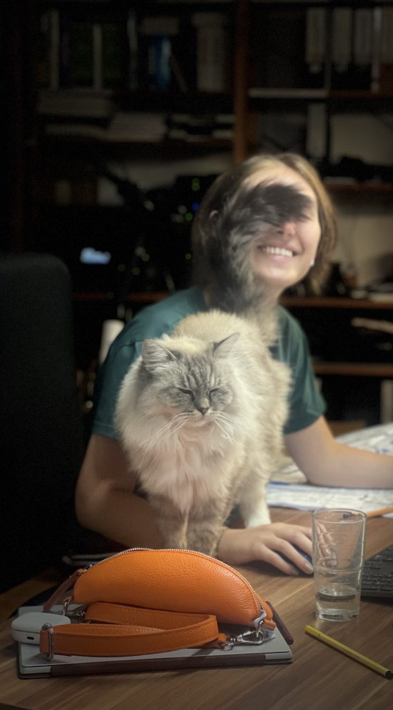 Caro trat dem Team ohne Bewerbung bei – sie saß einfach plötzlich auf dem Schreibtisch. Seitdem ist sie nicht mehr wegzudenken. Ihre Karriere begann mit einem beherzten Sprung auf die Tastatur, gefolgt von einer Serie ungewollt aber brillanter Textbeiträge in internen Berichten.