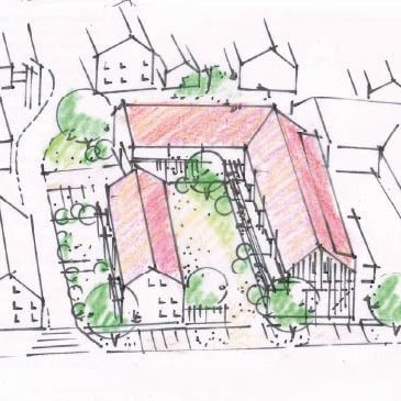 Ideenskizzen in Varianten zur Entwicklung einer ehemals landwirtschaftlichen Hofstelle im Ortskern